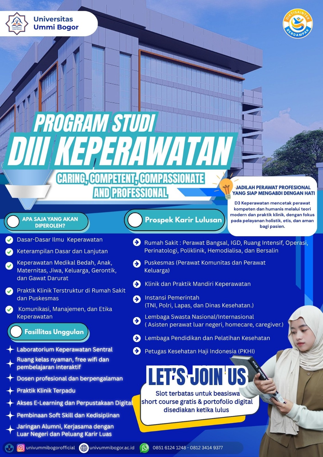 Program Studi DIII Keperawatan UMMI Bogor dirancang untuk menghasilkan perawat vokasional unggul, dengan karakteristik berikut: